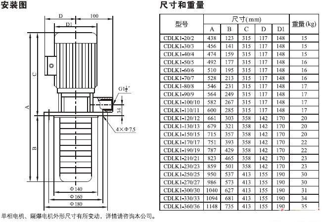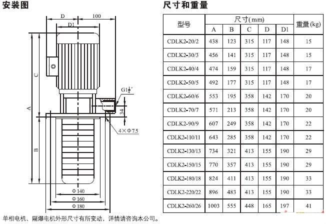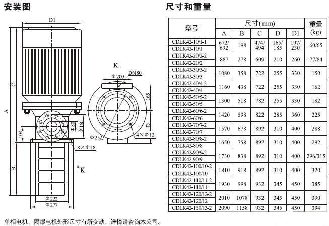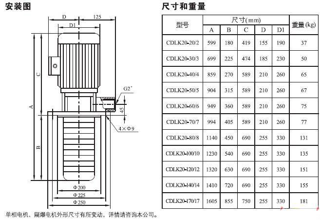 CDLK/CDLKF浸入式多級離心泵(安裝尺寸)