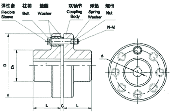 Summary Flexible Couplings Model FCLis widely used for its compact designing,easy installation,convenient maintenance,small size and light weight.As long as the relative displacement between shafts is kept within the specified tolerance,B couplings will operate the best function and have a longer working life.Thus it is greatly demanded in medium and minor power transmission systems driven by moters,such as speed reducers,hoists,compressos,conveyers,spinning and weaving machines and ball mills. TKPermittable relative displacement: Radial displacement:0.2~0.6mm Angle displacement:0°30′~1°30′ 外形尺寸參數 Size chart & Parameter 概 述 FCL型彈性套柱銷聯軸器的特點是結構簡單,安裝方便,更換容易,尺寸小,重量輕,因而得到廣泛使用,如若安裝調整后能保持兩軸相對位移量在規定的范圍內,則聯軸器會有滿意的使用性能和較長的工作壽命。因此能廣泛用于載荷不大,由電動機驅動的各種中、小功率傳動軸系中,如減速機、起重機、壓縮機、輸送機、紡織機、卷揚機、球磨機等。 彈性套柱銷聯軸器的許用相對位移: 徑向位移:0.2~0.6mm 角位移:0°30′~1°30′