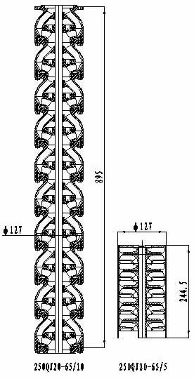 新型井泵要比現有的井用潛水泵成本低、效率高。從新、老井泵對比圖可以明顯看出,新型井泵比老式井泵要短得多,可節約原材料2/3,降低了生產成本。 四. 結束語