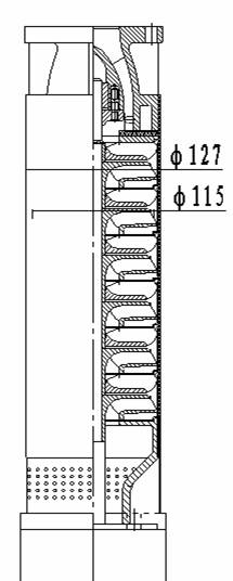 從資料看這一時期比較成熟的設計之一是模仿普通立式多級離心泵,采用正反導葉,葉輪采用優秀水力模型,導葉設計采用等速度矩原理。另一種采用空間導葉,葉輪采用優秀水力模型,考慮葉輪與空間導葉的相互作用,把兩者作為一個整體來設計。這些設計思想在當時的產品中得到很好得貫徹和體現。