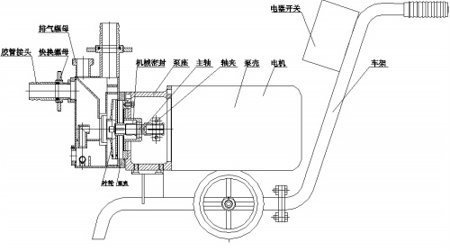 移動式果汁飲料,酒類,醬油及醫藥,石油化工等近似水類液體的輸送自吸泵結構示意圖