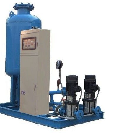 ⑵補(bǔ)水——當(dāng)循環(huán)系統(tǒng)發(fā)生泄漏時(shí)及向系統(tǒng)補(bǔ)水,泄漏一般分為少量泄漏和大量泄漏,當(dāng)少量泄漏時(shí),設(shè)備自動(dòng)選擇增壓泵從脫氣罐抽水補(bǔ)充,使系統(tǒng)壓力恒定;當(dāng)大量泄漏時(shí),設(shè)備自動(dòng)選擇從系統(tǒng)外(如自來(lái)水或軟水水箱)補(bǔ)水進(jìn)入脫氣罐,然后增壓泵從脫氣罐抽水補(bǔ)充,使系統(tǒng)壓力恒定。當(dāng)脫氣罐的貯水量少于設(shè)定值時(shí),自動(dòng)從系統(tǒng)外補(bǔ)給(如自來(lái)水或軟化水)。
