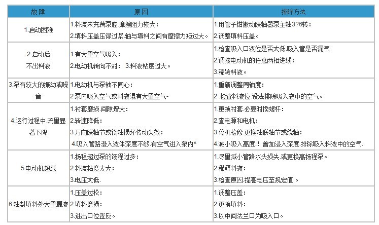 4.當流量顯著減少.說明橡膠村套已磨損.應更換新村套后再運轉。