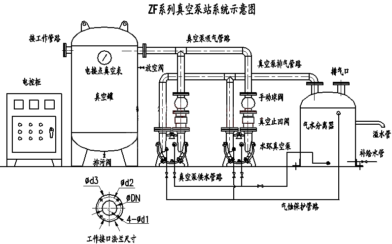 2BV、2BE1設有汽蝕保護接口。在泵發生汽蝕現象時,從泵排氣側的汽蝕保護接口充入不凝氣體即可消除汽蝕噪聲,并大大減輕汽蝕對泵的損害。