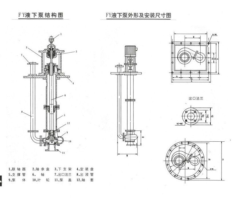 FY系列液下泵是本單位在傳統(tǒng)耐腐蝕液下泵基礎上,融合瑞士蘇爾壽公司同類產(chǎn)品的先進技術,經(jīng)改進設計而生產(chǎn)的新型泵;該泵取消了其他液下泵普遍采用的機械密封和選用了獨特結構的葉輪,使泵高效節(jié)能、無泄漏、壽命特長,從而廣泛應用于石油、化工、制藥、造紙、冶金、污水處理等行業(yè)。