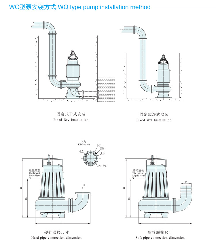 WQ潛水排污泵本公司新生產出11KW-22KW,二級2900r/min電機座,口徑DN50-200mm,揚程高可達100米,填補了國內空白,具有高效能,運行穩定,質量可靠.
