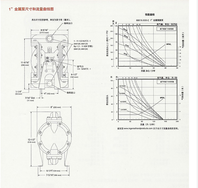 1.5寸英格索蘭氣動(dòng)隔膜泵尺寸圖