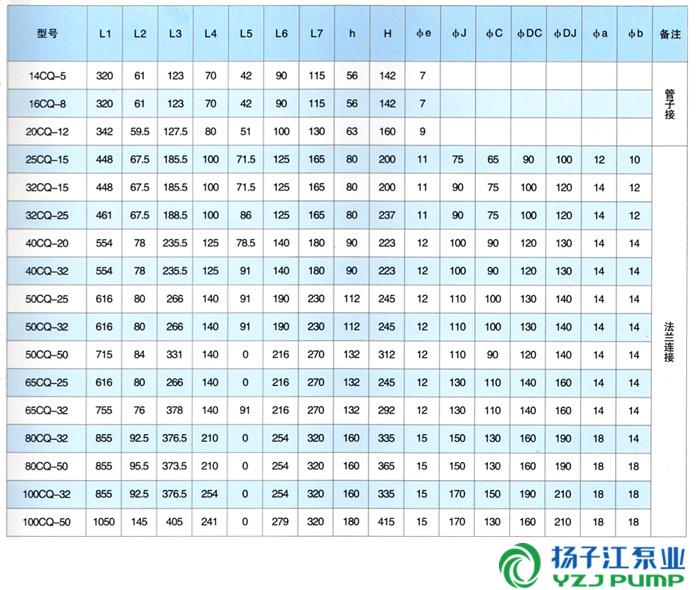 一、CQ型磁力驅動泵安裝尺寸圖: