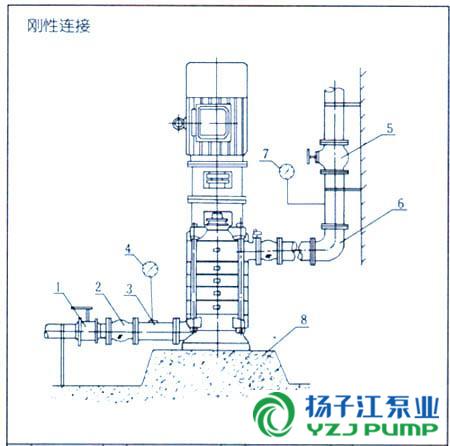 5. 安裝管路吋,逬、出水管路都應有各自的支承,不應使泵的法蘭承受過大的管路重量.