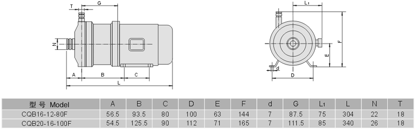 CQB-F系列全氟襯氟磁力泵性能參數(shù)型號意義安裝尺寸