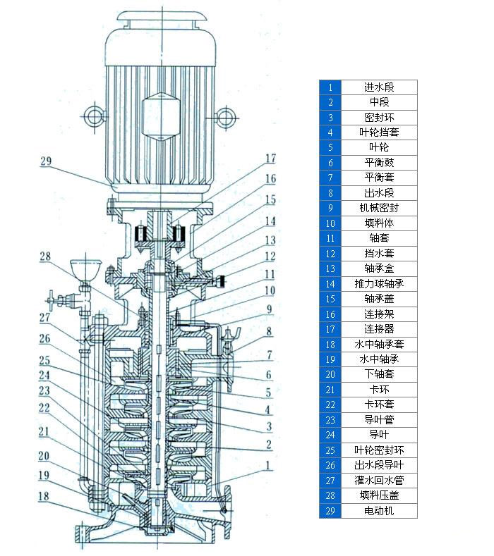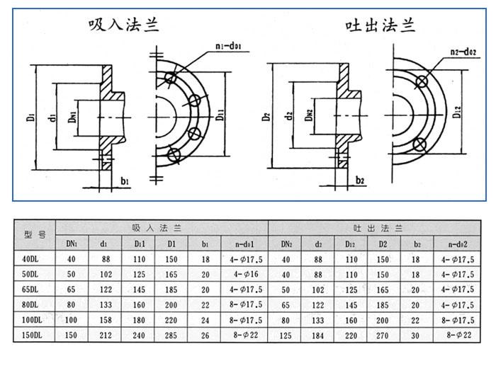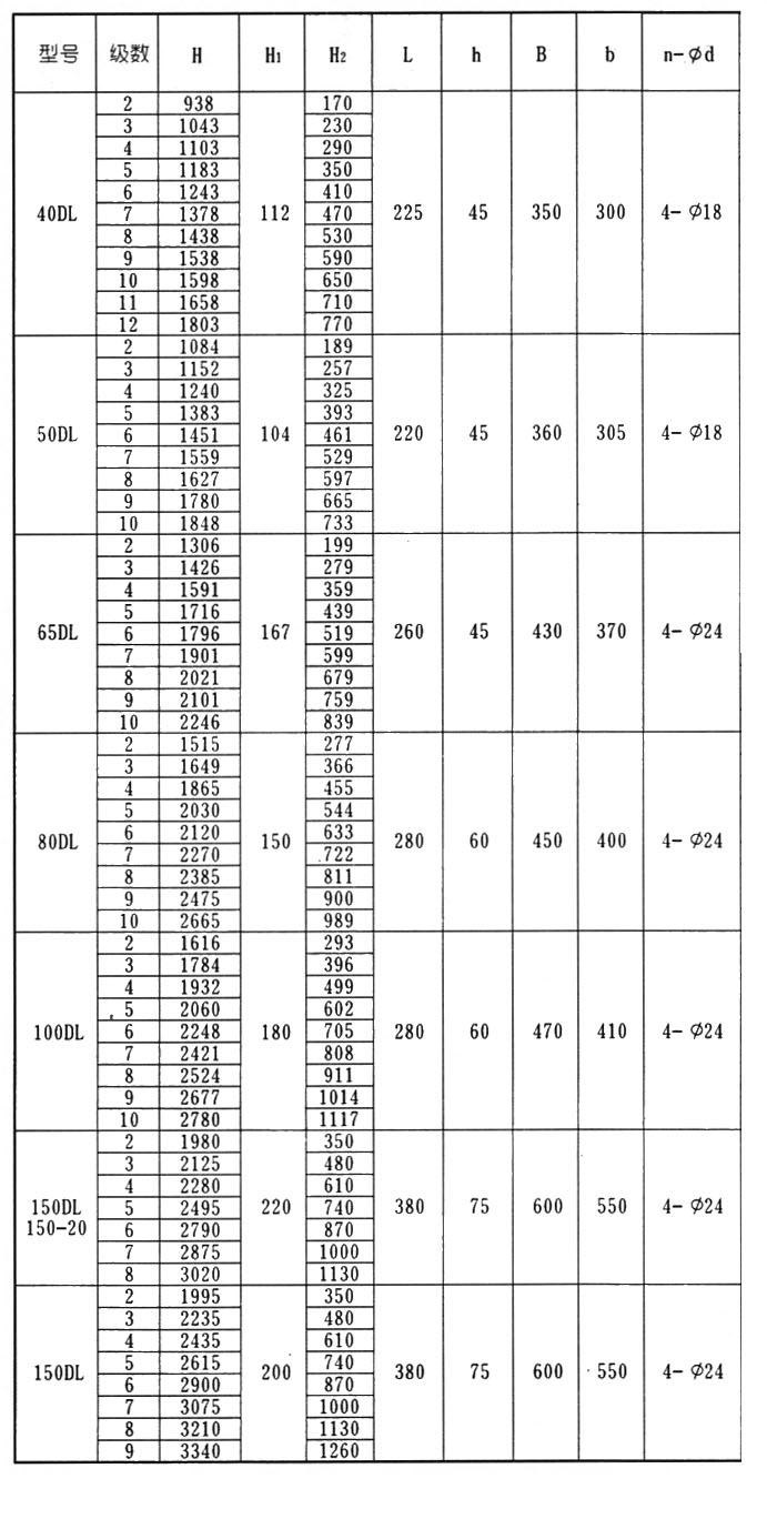 DL系列立式多級離心泵結構圖及安裝尺寸