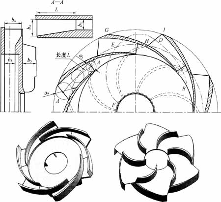 圖9-17正導葉螺旋線部分和擴散段的設計