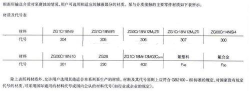 管道離心泵可選用的材質看下圖