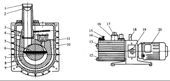 7-轉(zhuǎn)子;8-定子;9-油箱;10-真空泵油;11-排氣閥門;12-放泊螺塞;