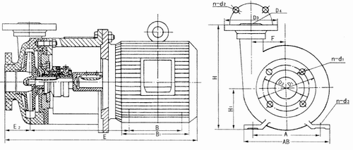 PF(FS)型系列化工泵為直聯式結構,由泵體及托架與電機法蘭聯接,托架支承泵體,葉輪通過軸與電機直聯。該系列泵的特點:結構簡單緊湊、零件少、性能好。泵的旋轉方向,自吸入口向電機方向看為順時針方向旋轉,泵出口垂直向上。 泵的密封,選用聚四氟乙烯(F4)波紋管,外裝式耐腐蝕機械密封。
