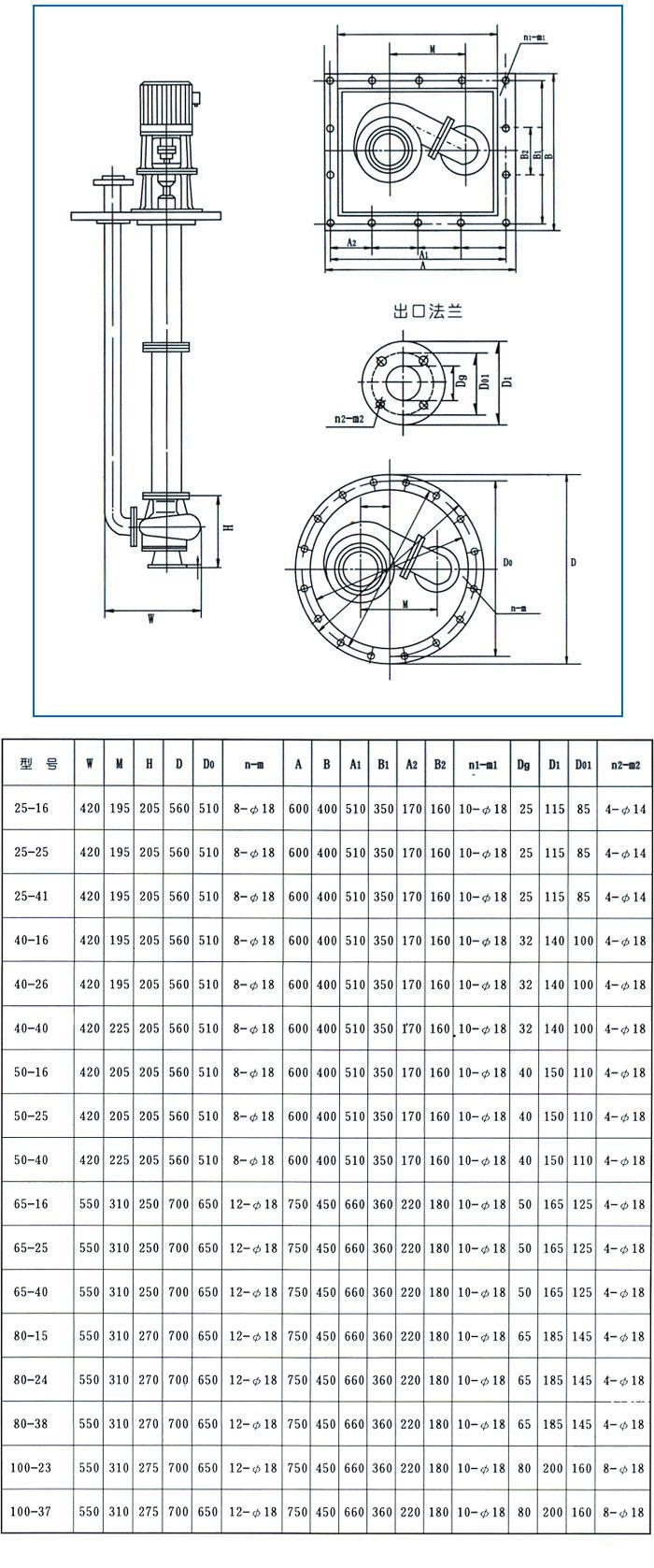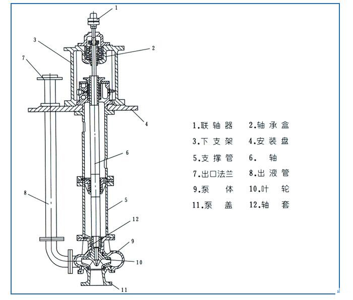1、泵為立式液下泵,外形美觀,直接安裝在被輸送介質的儲存器上,無額外占地面積,從而降低了基建投入。