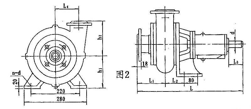 泵出口垂直向上,也可裝成水平方向,本泵由彈性聯軸器直接傳動(亦可才艮據需要改用皮帶傳動)。