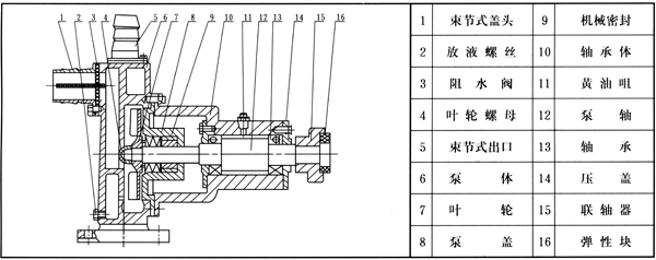 2,擰開葉輪嫘母(右旋)取下葉輪、鍵和泵蓋,再將機械密封從泵蓋中取下。