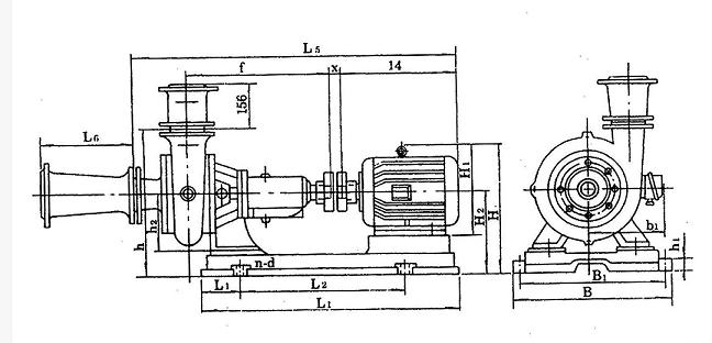 泵出口垂直向上,也可裝成水平方向,本泵由彈性聯軸器直接傳動(亦可才艮據需要改用皮帶傳動)。
