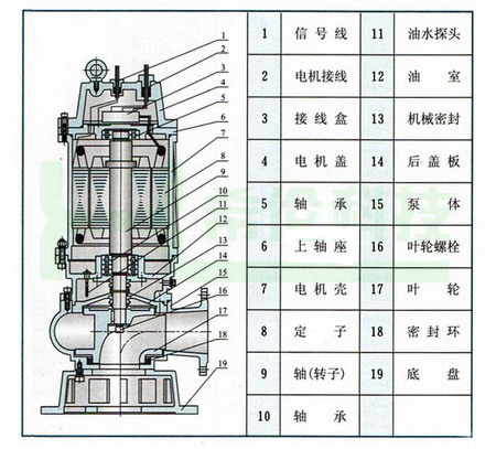 WQ型系列無堵塞潛水排污泵產品結構特點