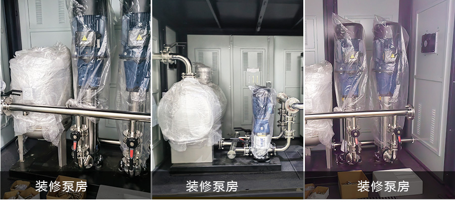一體化智慧泵房由數字集成全變頻供水設備、管閥系統、網絡通信系統、視頻監控系統、門禁安防系統、通風除濕系統、降噪減震系統、保溫隔熱系統等部分組成。