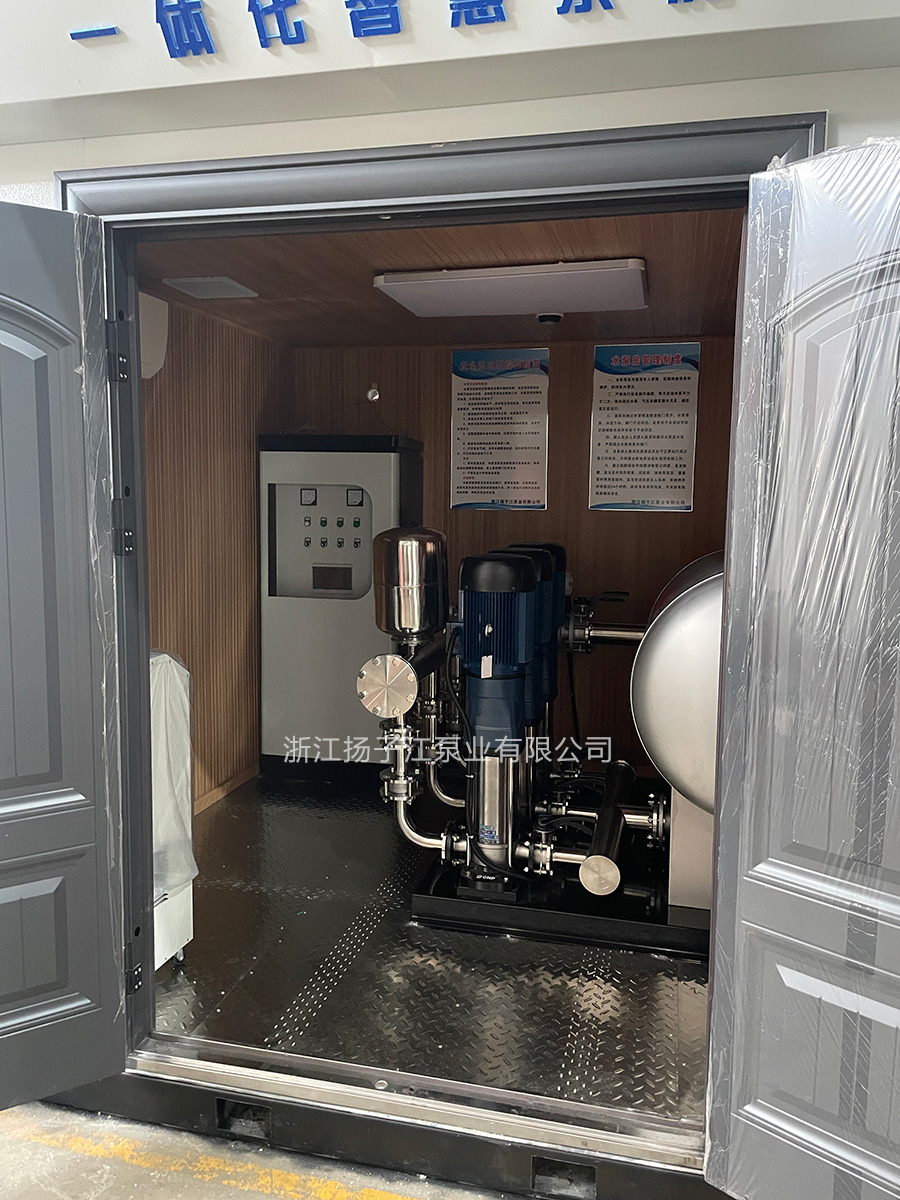 一體化智慧泵房由數字集成全變頻供水設備、管閥系統、網絡通信系統、視頻監控系統、門禁安防系統、通風除濕系統、降噪減震系統、保溫隔熱系統等部分組成。