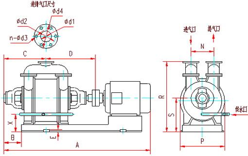SK型水環式真空泵外型及連接圖
