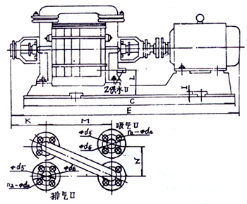 1、2SK系列水環真空泵關閉進氣管路上的閘閥(用戶自裝,圖上未畫出);