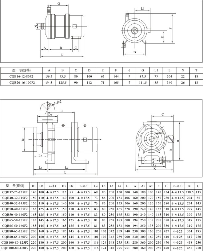 3、CQB-F2型襯氟磁力泵應(yīng)水平安裝,不宜豎立,泵體不得承受管路重量,對于特殊要求垂直安裝的場合,電機(jī)務(wù)必朝上。