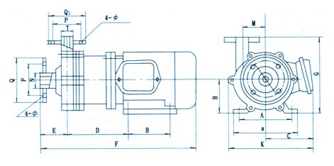 型號 | a | b | c | d | e | f | g | h | j | a | k | m | n | 機座 螺孔 | p | p1 | q | q1 | φ | φ | 管 子 連 接 |